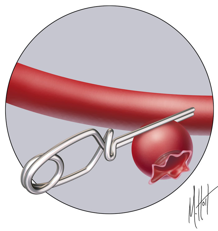 外科手术治疗动脉瘤的介入安置夹子上动脉瘤颈