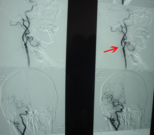 该患者未发作明显中风,于4月前冠脉搭桥术术前检查中B超发现双侧颈动脉狭窄,狭窄程度符合颈动脉内膜剥脱术手术指征。2010年9月16日,协作组张勤奕教授应邀前往上海华山医院,与该院神经外科余波主任共同为患者实施了右侧颈内动脉内膜剥脱术。