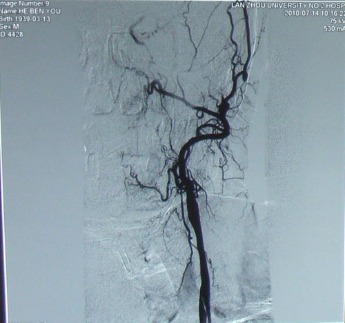 2010年9月25日,协作组张勤奕教授应邀前往兰州大学医学院第二附属医院为该患者顺利实施了左侧颈内动脉内膜剥脱术。