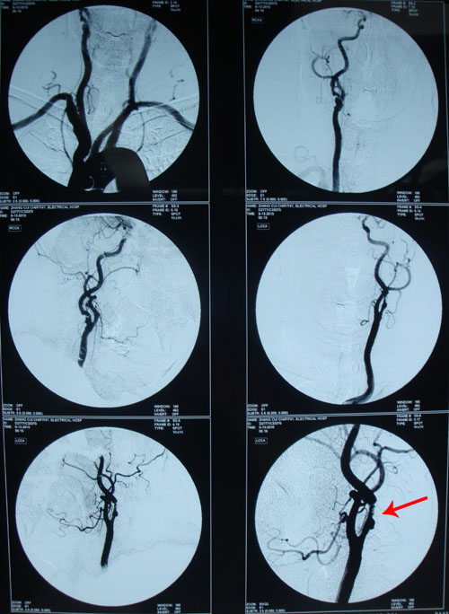 2010年9月21日,由协作组张勤奕教授为其顺利实施了左侧颈内动脉内膜剥脱术。