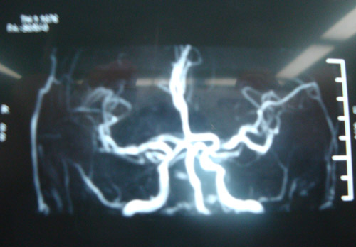 患者6年前无明显诱因出现头晕,呈阵发性,发作时神智欠清晰,不能自行穿着衣物,无视物模糊及视物旋转,无头痛、耳鸣、恶心呕吐。在当地医院输液治疗(具体用药不详)。病情无明显好转,其后一直服用中药治疗。2年前患者因头晕于“水口山职工医院”就诊。诊断为“脑梗塞”并住院。近两年来多次出现上厕所时突发头晕,并摔坐地上,不能自行起身但神志尚清。2年来患者逐渐变得神智淡漠,对人接物冷淡并有性格逐渐改变、易怒。10余天前患者于南华大学附一院行颈部彩超示:左侧颈总动脉鞘部管壁粥样斑块形成;双侧椎动脉血流速度减慢,左侧椎动脉痉挛加重。为求进一步诊治入住南华大学附二院。自患病以来患者精神稍差,食欲一般,睡眠一般,大便黄染、小便正常,体重无减轻。