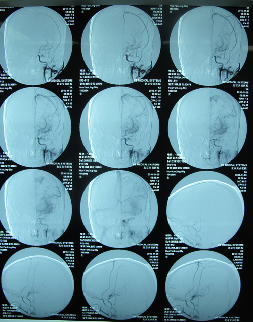头颅MRA(2010-10-31):右侧颈内动脉狭窄,左侧大脑前动脉、大脑中动脉未显影。