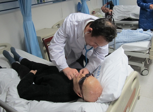 张勤奕教授在术前为患者进行检查