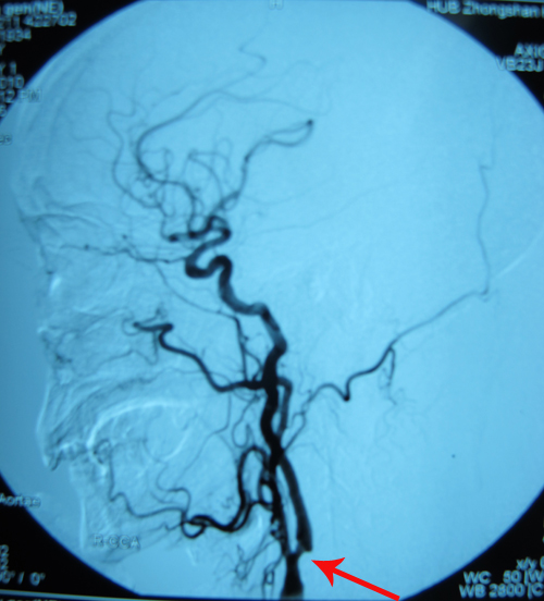 该患者右侧颈内动脉中重度狭窄,且出现TIA症状,符合颈动脉内膜剥脱术手术指征。2010年12月20日,由协作组张勤奕教授与安贞医院欧阳川教授顺利为其实施了右侧颈内动脉内膜剥脱术。