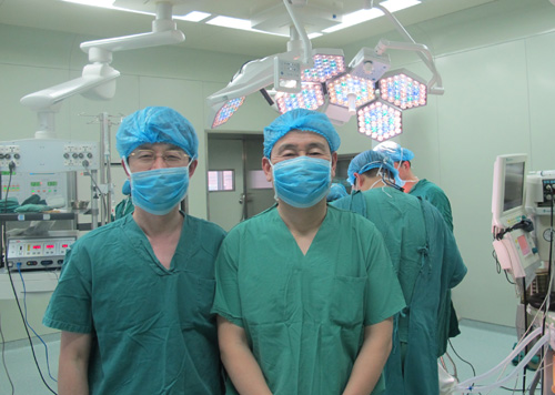 2011年2月26日,协作组张勤奕教授与宁新宇教授应邀前往扬州市苏北人民医院,顺利为一位76岁高龄的患者实施了右侧颈内动脉内膜剥脱术及成形术。