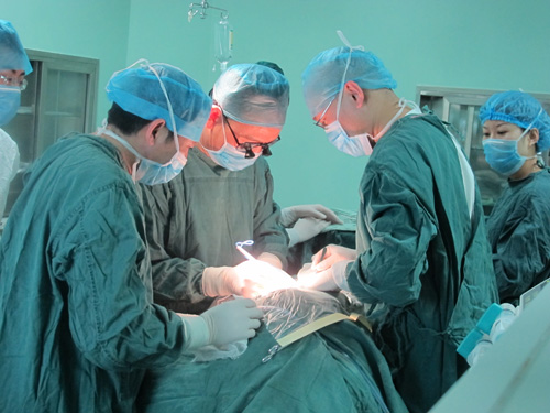 2011年3月17日,协作组张勤奕教授和宁新宇教授前往合作医院——吉林医药学院附属医院,顺利为两位患者实施了颈动脉内膜剥脱术。
