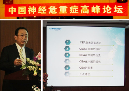 2011中国神经危重症高峰论坛于3月19日在北京朝阳医院举行。该论坛由首都医科大学附属北京朝阳医院神经内科ICU、首都医科大学危重症医学系主办,中华医学会继续教育部协办。来自北京各大医院的专家学者就15个方面的议题与广大参会人员进行了分享和探讨。北京安贞医院教授、中美脑中风协作组中国区组长张勤奕教授做了题为《中美颈动脉内膜剥脱术(CEA)的发展现状及前景》的发言。