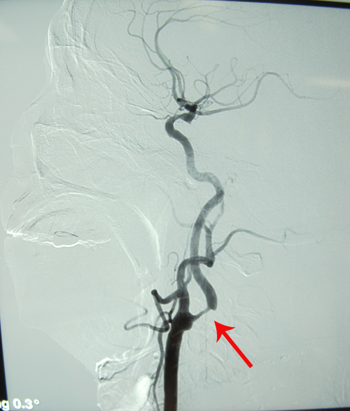 该患者左侧颈内动脉环周低回声斑,管腔狭窄约75%-80%,症状明显,且有高血压及糖尿病史,符合颈动脉内膜剥脱术手术指征。于2011年3月25日,由协作组张勤奕教授顺利为其实施了左侧颈动脉内膜剥脱术。