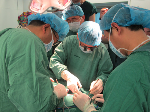 2011年3月29日,协作组张勤奕教授和安贞医院欧阳川教授应邀前往青岛,顺利为一位75岁的患者实施了右侧颈动脉内膜剥脱术。