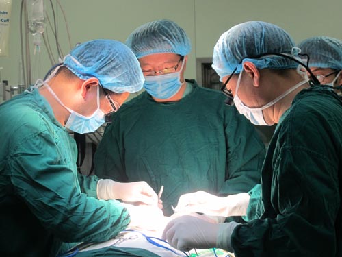 2011年4月16日,协作组张勤奕教授应邀前往苏北人民医院,顺利为一位患者实施了左侧颈内动脉内膜剥脱术。
