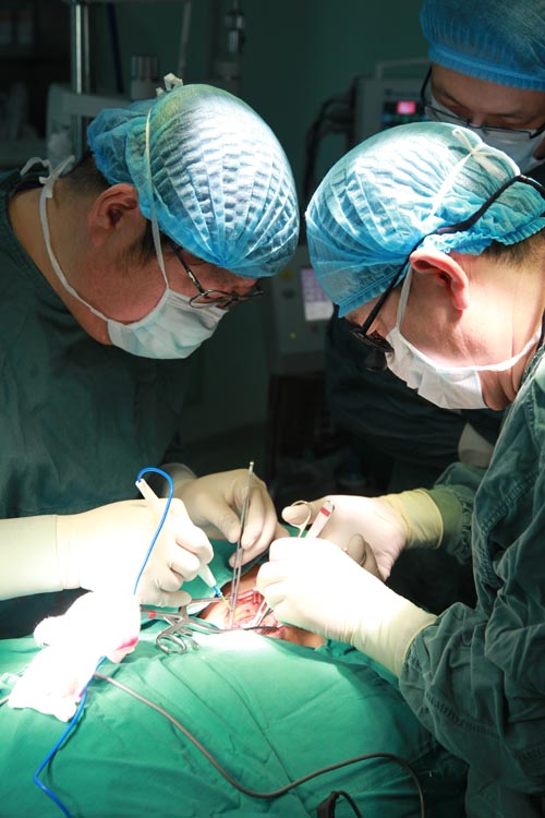 2011年4月26日,协作组张勤奕教授与安贞医院欧阳川教授在北京市六院顺利为一位患者实施了左侧颈内动脉内膜剥脱术。