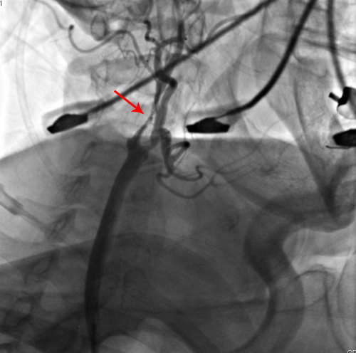 患者张某某,女,70岁,因间断头晕,肢体乏力1年余,加重1周入院。患者1年前无明显诱因出现头晕,伴左下肢力弱,发作时测血压不高,无明显视物旋转,无恶心、呕吐、耳鸣及听力下降,休息后可好转。在北京某医院就诊,完善头颅CT示腔隙性脑梗塞;颈动脉超声提示颈动脉狭窄,考虑脑供血不足,给予抗血小板,改善脑供血等治疗后上述不适稍好转。1周前患者自觉头晕、肢体乏力等不适加重,性质基本同前。到安贞医院就诊,行脑CT除外新发脑梗塞。颈动脉CTA示双侧颈动脉硬化伴明显狭窄,给予阿司匹林抗血小板、阿托伐他汀调脂稳定斑块等治疗,症状缓解不明显。因再次出现头晕加重,为进一步治疗急诊于北京市六院,以“颈动脉狭窄”收入院。患者发病以来神清,精神可,饮食、睡眠尚可,体重无明显变化。