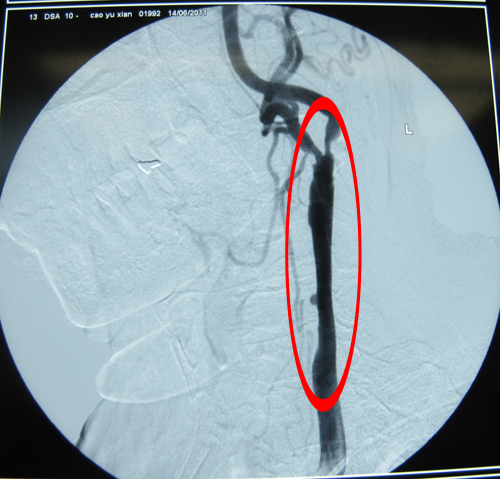 左侧颈内动脉起始段中重度狭窄,颈总动脉重度狭窄