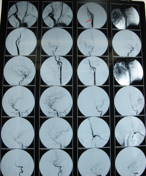 头颅CTA(同煤总医院,2011-5-30):颈动脉硬化性改变(左侧颈内动脉近段管腔中重度狭窄,右侧颈内动脉近段轻度狭窄)。
