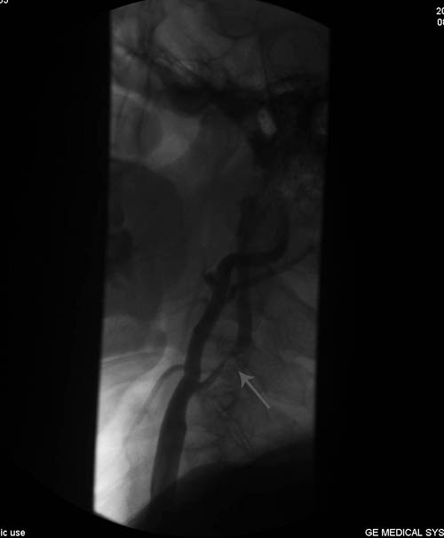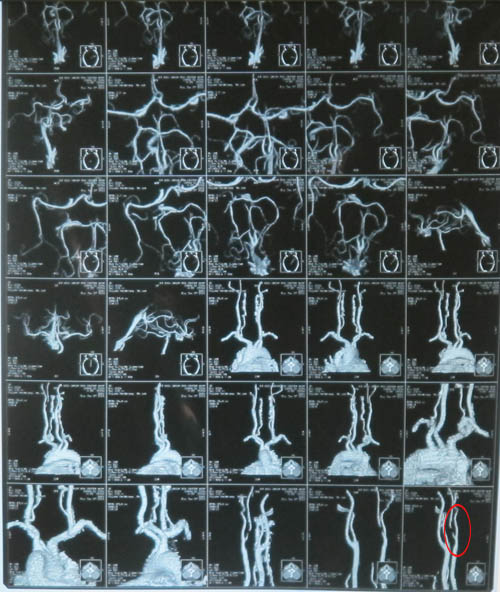 该患者老年男性,右侧颈内动脉重度狭窄,出现头晕、胸闷症状,有冠心病、脑梗塞、糖尿病病史,CEA手术指征明确。2011年7月21日,协作组张勤奕教授应邀在平顶山市第二人民医院为该患者实施了右侧颈内动脉内膜剥脱术。术后患者恢复良好。