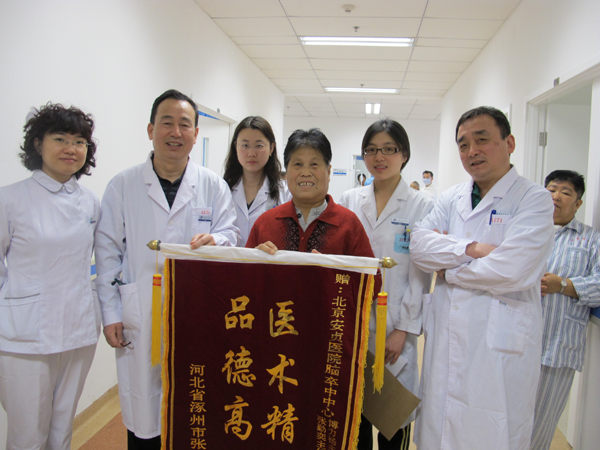 北京安贞医院脑卒中中心自2011年10月24日至-11月24日一个月的时间内,共开展颈动脉内膜剥脱术11例,腋---腋血管转流术1例。患者均恢复良好出院。张勤奕教授良好的技术及医德为患者所称颂,患者纷纷送来锦旗,以表达对张勤奕教授的感激之情。