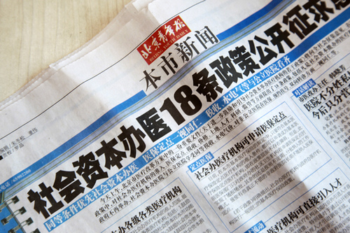 2012年2月9日,北京市医疗改革方案中的一份重要文件《关于进一步鼓励和引导社会资本举办医疗机构的若干政策》向全社会征集意见。在新政策中,对社会办医疗机构的准入、医保定点、税收、价格、土地、人才、科研、监管等方面提出了18条政策,包括凡是社会资本能办的医疗机构,政府不再举办,社会资本办医院与公立医院享受同等税收、水电气价,对非公立医院在医保、预约挂号、双向转诊方面一视同仁等。