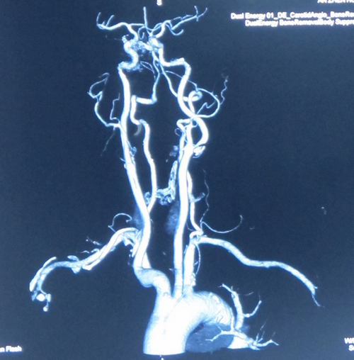 患者李某某,女,70岁,主因“头晕三年,加重伴双眼视物模糊3个月”入院。患者3年前无明显诱因出现头晕、头部不适,间断发作,半年前无明显诱因跌倒一次,未予重视。3个月前头晕加重并伴有双眼视物模糊,于脑卒中筛查门诊就诊,查颈动脉椎动脉B超:双颈动脉多发斑块,左侧颈内动脉中度狭窄。进一步查颈动脉CTA示:左侧颈内动脉开口处重度狭窄。收入院拟行CEA治疗。
