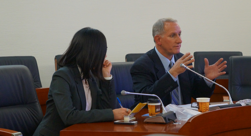 美国专家首先参观了安贞医院体检中心。随后在安贞医院新门诊楼12层第四会议室,北京安贞医院脑卒中中心主任、中美脑中风协作组中方组长张勤奕教授、北京安贞医院周生来副院长分别就脑卒中筛查及疾病管理情况进行了交流,美方专家就美国脑卒中流动筛查的情况进行了介绍,取得良好效果。