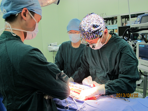 患者DSA结果提示患者头臂干闭塞,右侧颈内动脉动脉、颈外动脉、锁骨下动脉均由甲状腺上动脉侧枝循环供血,为降低未来脑梗死发生风险,2013年4月22日,张勤奕教授于安贞医院为其施行了升主动脉-右颈总动脉人工血管转流术。手术在全麻开胸手术,请安贞医院心外五大血管科医师协助手术,手术圆满成功,患者恢复良好。