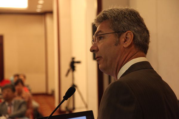 美国专家 Steven 教授第一个作报告 讲解CEA、CAS和药物治疗