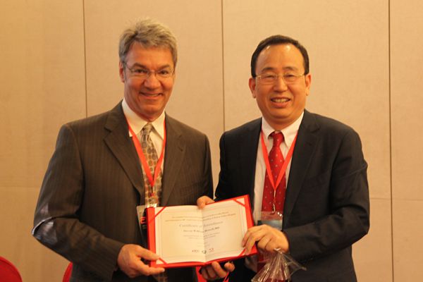 张勤奕教授为Steven颁发中美脑中风协作组专家荣誉证书