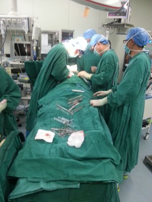 患者1个月前无明显原因出现胸闷,行冠脉造影检查,诊断为冠心病,为求进一步诊治收住北医三院。患者住院期间,查颈动脉超声提示左侧颈动脉重度狭窄,余检查未见明显手术禁忌症。拟同台行冠脉搭桥+颈动脉内膜剥脱术,2014年9月24日,张勤奕教授受邀于北京大学第三医院为该患者实施了颈动脉内膜剥脱术,手术圆满成功,患者恢复良好。