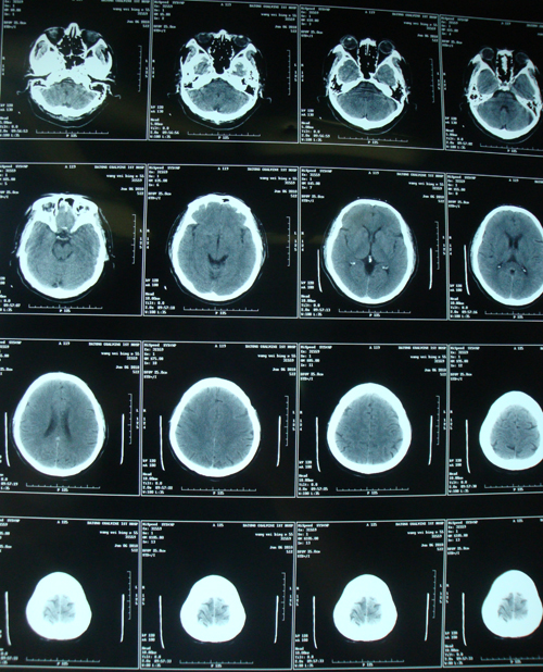 头颅CT:右侧基底节腔隙性脑梗塞