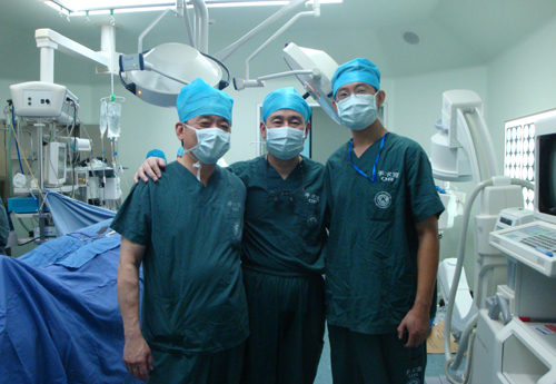 从上午8点半进入手术室,专家们整整在手术室奋战到下午两点。同时参加手术的还有人民医院的凌云鹏医生,据他介绍,像这样复杂的手术他还是头一次碰到。在术中剥除颈内动脉近端的斑块后,发现血流通过增加的不是很明显,张教授推测可能是因为其远端颈内动脉还有狭窄。他试探性地在颈内动脉处放入球囊并下拉,结果发现血流有所增加,但是仍旧不是很理想。于是让博力杨教授向血管内注入造影剂进行观察,发现在之前颈内动脉狭窄远端约6cm处管腔内有漂浮物,证明的确存在远端狭窄。经过商讨,专家们认为如果不处理远端血栓,那么在打通近端颈内动脉后,向上的血流很可能会将上面狭窄处的血栓冲到脑部,堵塞脑部血管,造成严重的后果,于是他们决定术中为其放置支架。整个手术过程进行得很顺利,患者的颈内动脉远端共放置两处支架,术中监测显示其血流恢复通畅。