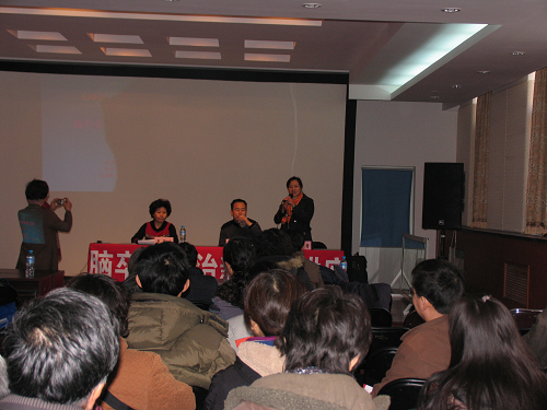北京结控所党总支书记王星火主持并讲话,西城区社区卫生服务中心所长史艳青、北京结控所职工、各区县结防所代表、西城区社区居民、北京广播电视报、新华社记者及社会各届相关人士,共计70余人到会参加了讲座。
