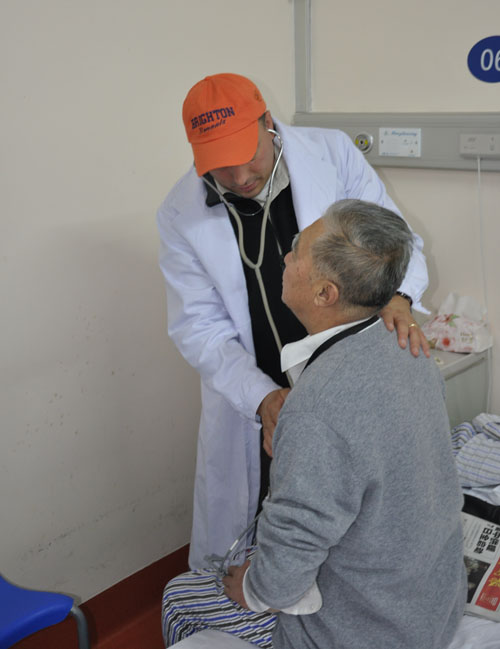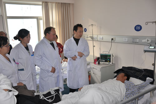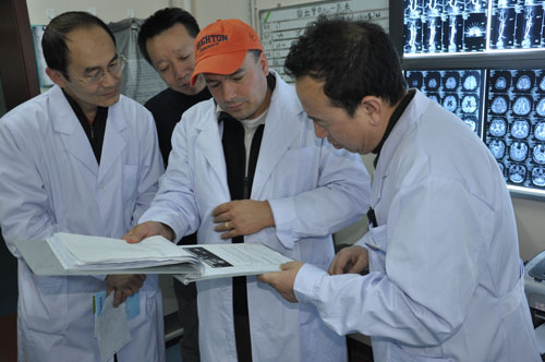 2009年11月4日,中美脑中风协作组美方专家Douglas Wirthlin前往航空中心医院脑血管中心,对患者张某某进行了术前会诊,亲自到病房为其进行检查,并参加了全科组织的病例讨论,共同商讨手术事宜。