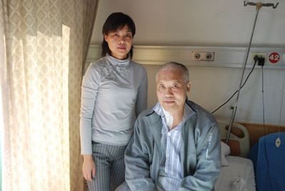 (患者妻子):具体来说我儿子是8月下旬在美国查到的,说西安交大有一个从美国回来的能做这个手术的医生。女儿是9月2号查到的,女儿从你们的中风网上查的就更具体了。女儿给我的字特别小,我用放大镜看的。我是5号早上给你们打的电话,一打就打通了。正好张教授那天上午有时间,看了一个多小时,问病史,看材料,介绍CEA手术的情况,最后跟我们约定,10月中旬中美协作组开会的时候,由他和美国专家一块给老宋做手术。我们是10月13号住进来的,10月21号做的手术,做得很顺利,他现在比以前脑子清楚多了。