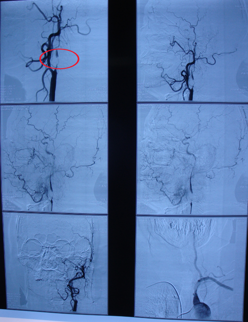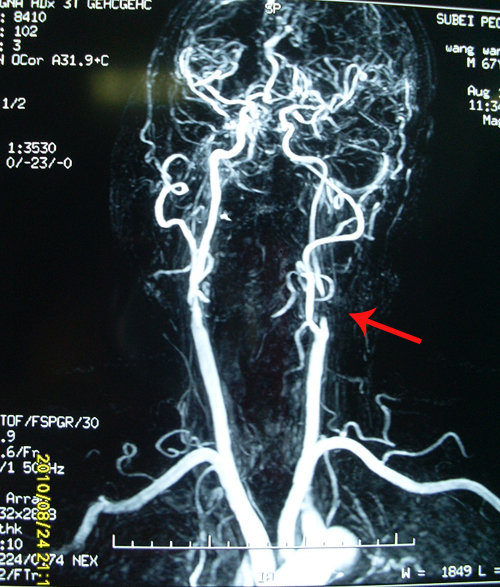 该患者为典型的TIA发作,且左侧为责任病变,右侧肢体症状,高龄,有高血压病史,符合颈动脉内膜剥脱术手术指征。手术后可获得明显改善,避免卒中发作。2010年9月4日,由协作组张勤奕教授和宁新宇教授顺利为其实施了左侧颈内动脉内膜剥脱术。目前该患者症状已获得明显改善。